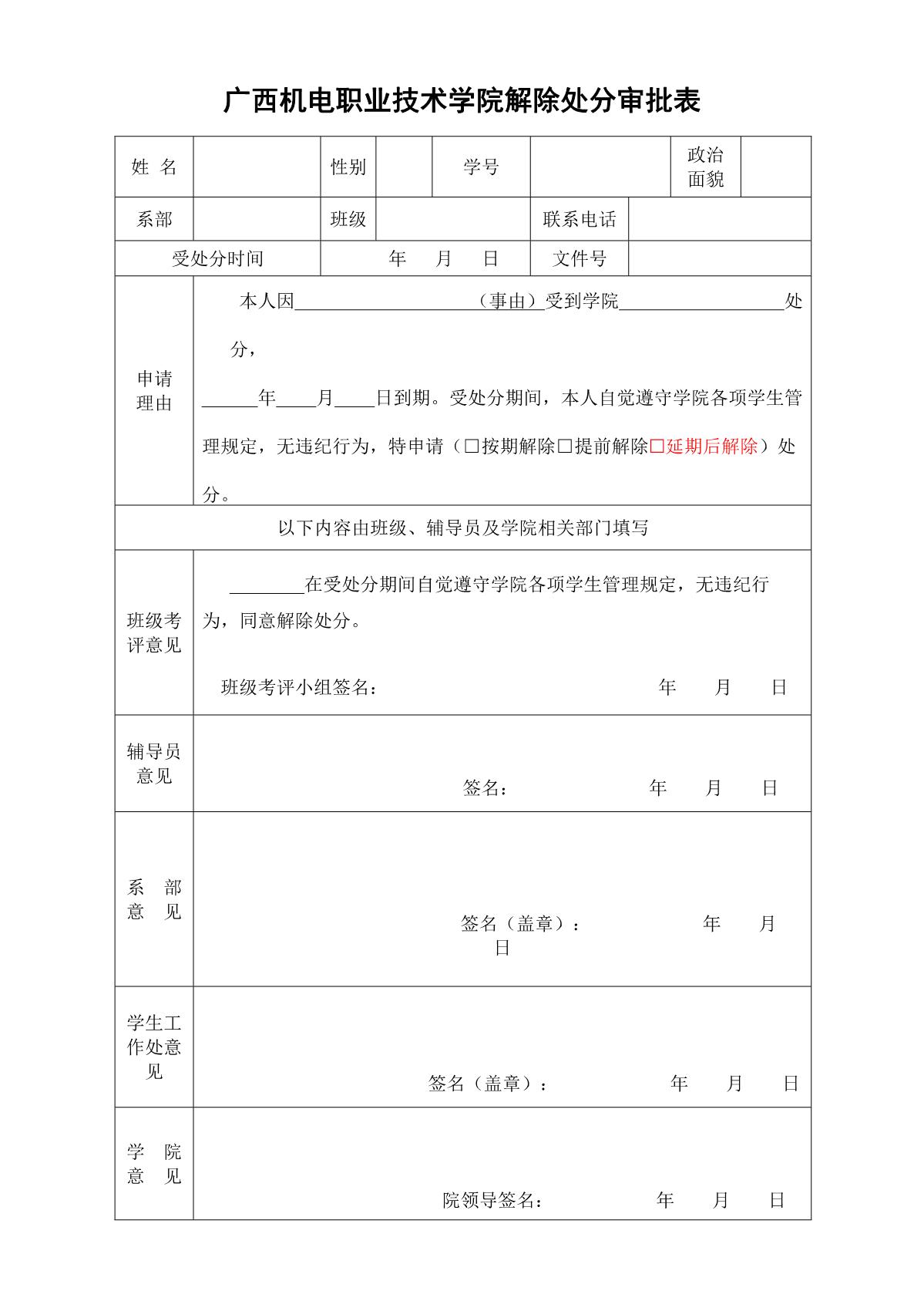 awc77万象城官网解除处分审批表