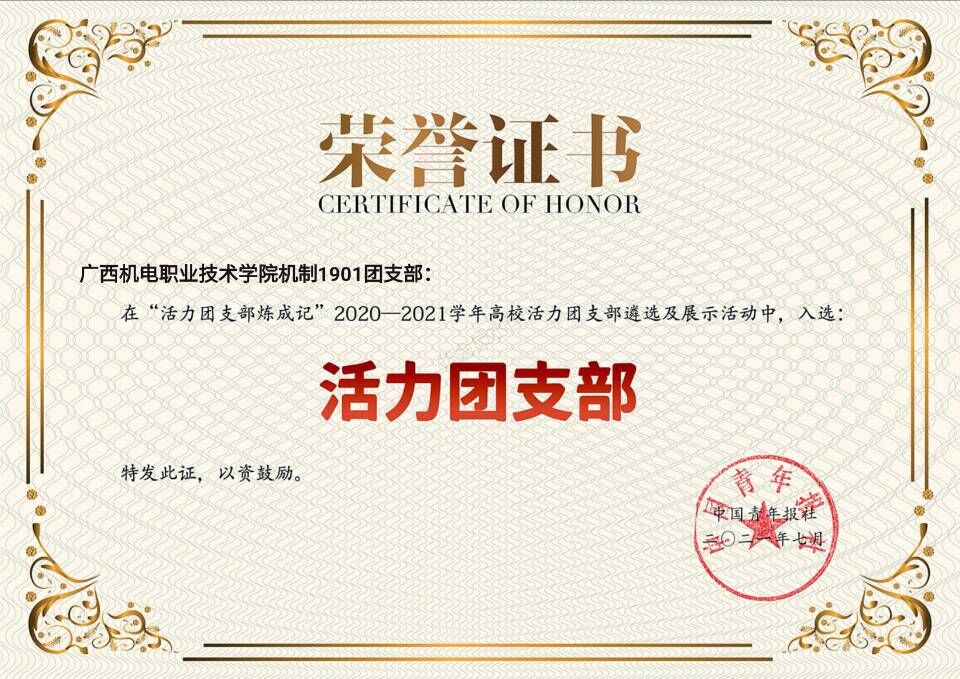 机制1901团支部获2020—2021学年全国高校活力团支部荣誉称号