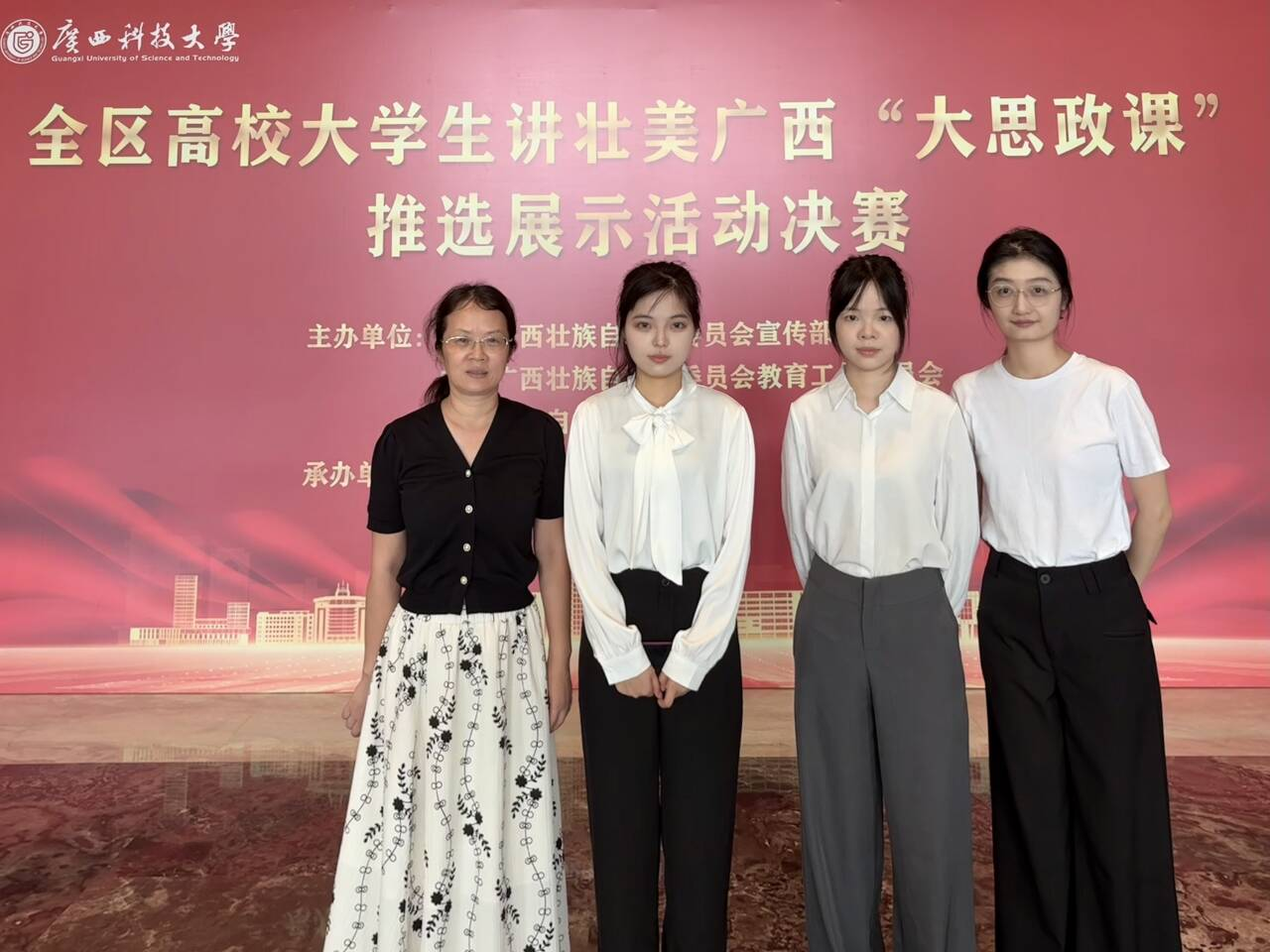 据悉,本次活动由自治区党委宣传部、自治区党委教育工委、自治区教育厅共同主办,广西科技大学马克思主义学院承办,活动分为本科组和高职高专组,比赛经过各高校初赛、全区网上复赛两个环节,最终本科组共有28个作品、高职高专组26个作品进入展示活动决赛,高职高专组现场共评出一等奖5项。