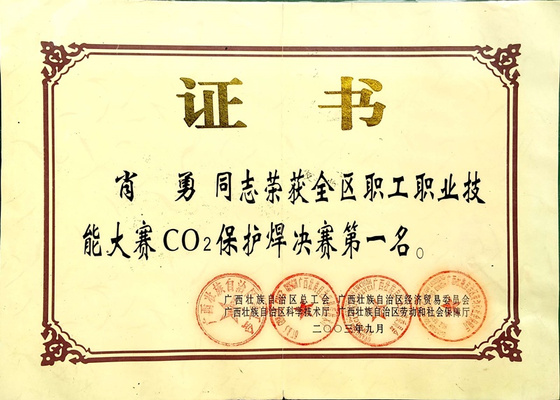 2003年全区职工职业技能大赛CO2气体保护焊一等奖