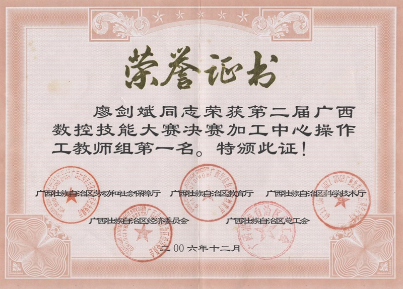 2006年第二届全区数控技能大赛加工中心操作工一...