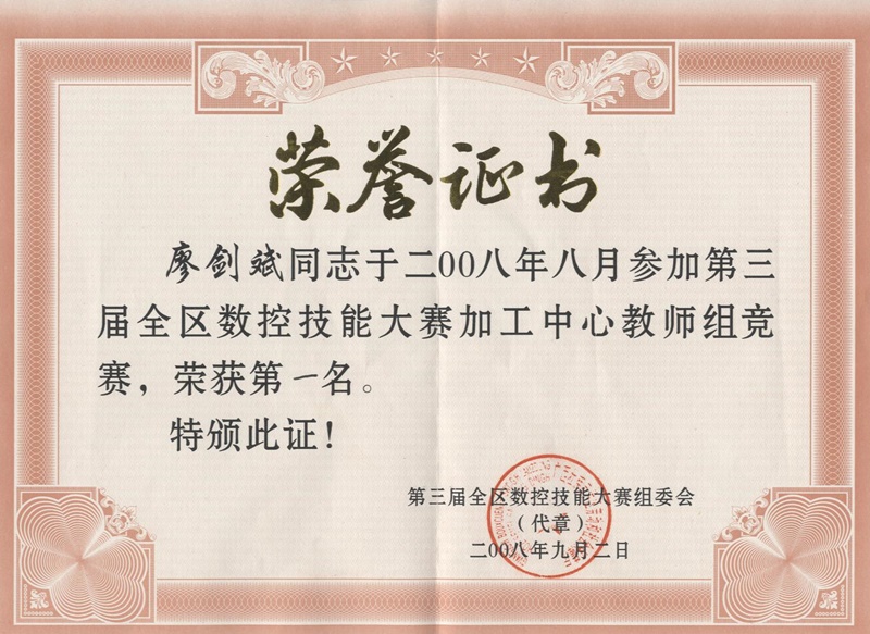2008年第三届全区数控技能大赛加工中心教师组一...