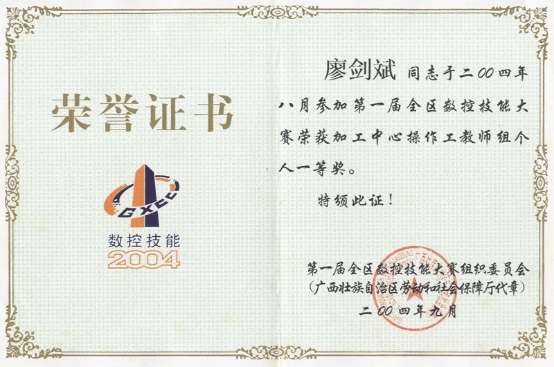 2004年第一届全区数控技能大赛加工中心操作工一...