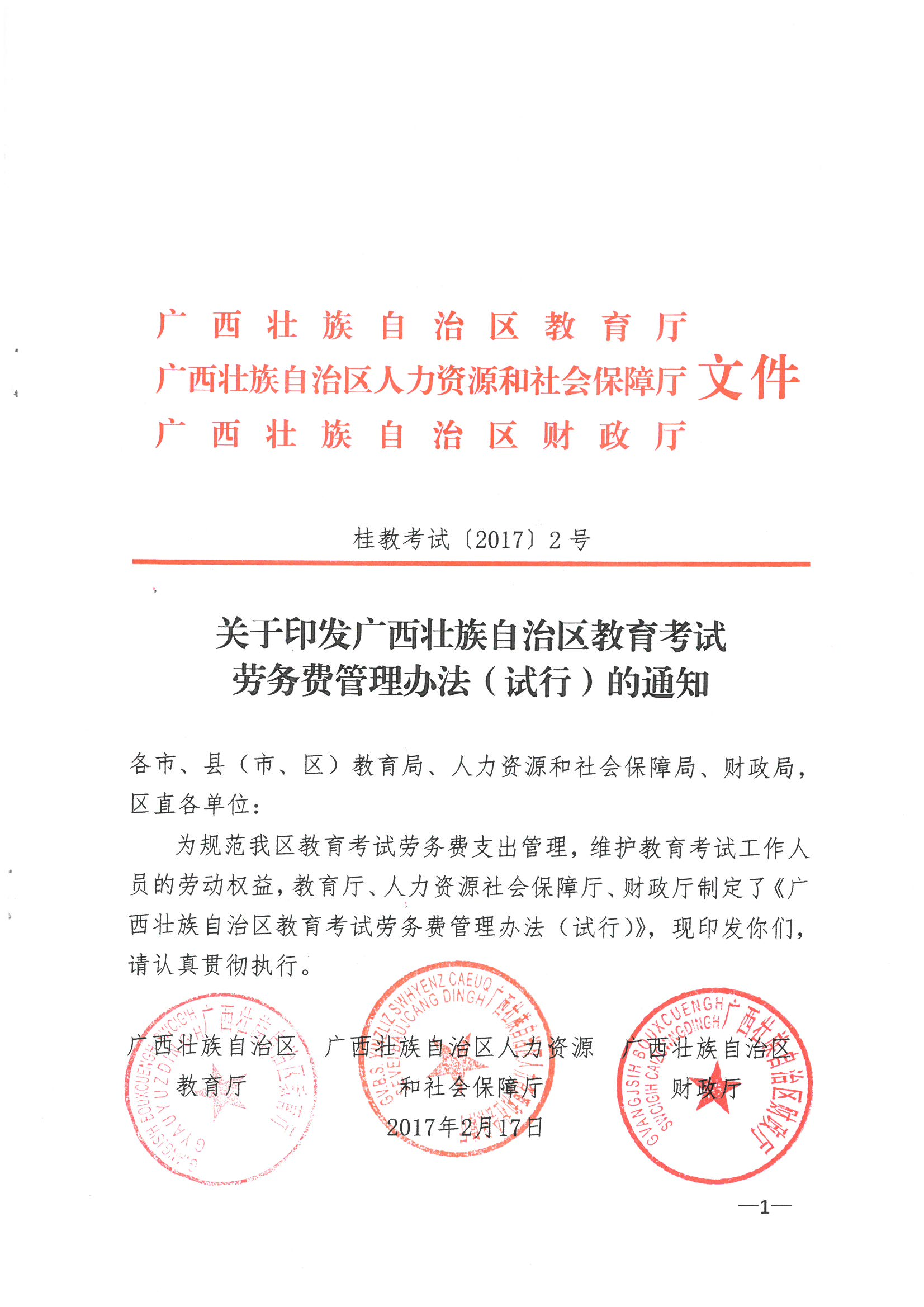 广西壮族自治区教育考试劳务费管理办法