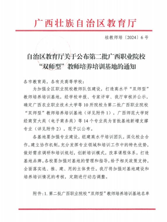 喜报!万象城官网入选广西职业院校“双师型”教师培养培训基地