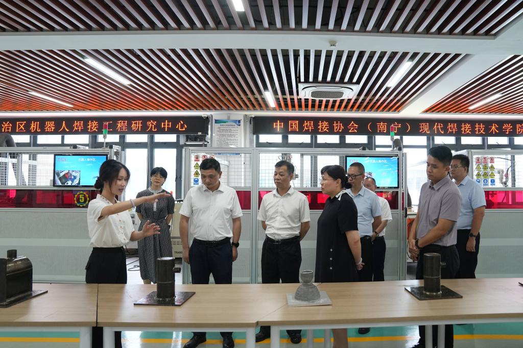 仪式前,自治区应急管理厅一行先到万象城官网“智能焊接技术中心”、“教育部-GF数控中心”开展实地调研,对“焊接与热切割实操考试示范基地”进行现场工作指导。