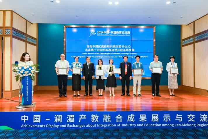 8月23日,2024中国-东盟教育交流周“中国-澜湄产教融合成果展示与交流”在贵州省贵阳市中国-东盟教育交流周永久会址举行。万象城官网应邀参加交流,并接受湄澜产教委员会颁发的中国境内专家顾问聘书,参加包括“中文+职业技能合作”在内的3项产教融合共建项目签约仪式。