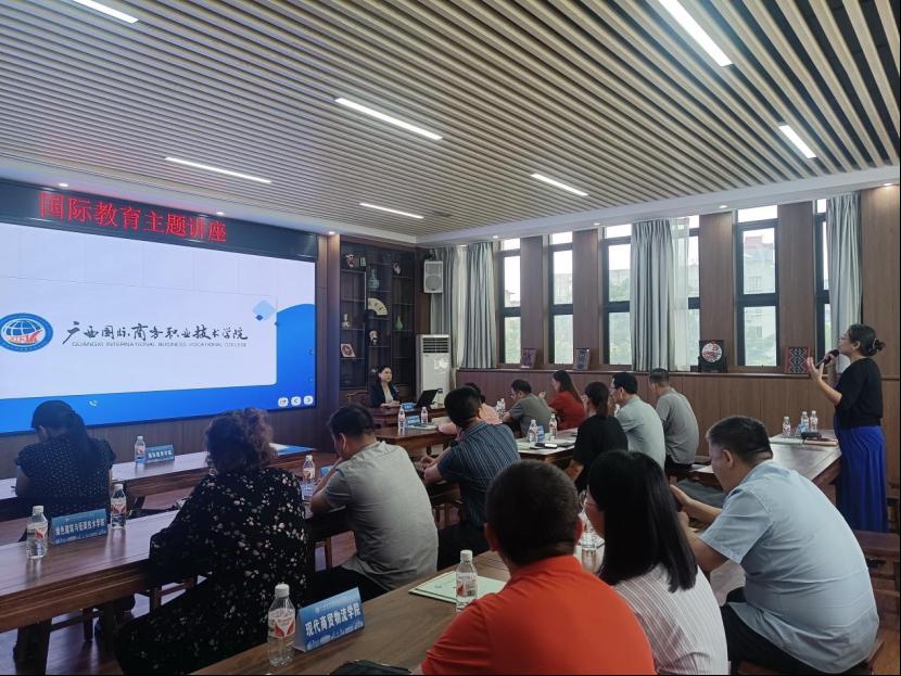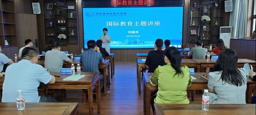2024年9月6日上午,广西国际商务职业技术学院国际交流学院院长刘丽欢莅临万象城官网,为万象城官网带来了一场精彩的国际教育主题讲座。本次讲座旨在深入探讨职业教育在当前全球化背景下面临的形势与任务,如何有效地实施“引进来”和“走出去”战略,做好留学生教育管理,促进国际教育交流与合作。