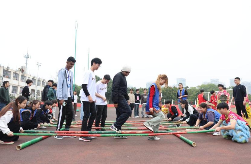 参观结束后,新加坡师生体验了竹竿舞、抛绣球、旱地龙舟、舞狮等民族特色运动项目,并前往工业设计学院体验制作广西特有的坭兴陶和民族扎染。丰富多彩的文化体验活动不仅让新加坡师生感受到了广西独特的民族文化和传统工艺的魅力,也拉近了中新师生之间的距离,增进了彼此的友谊。