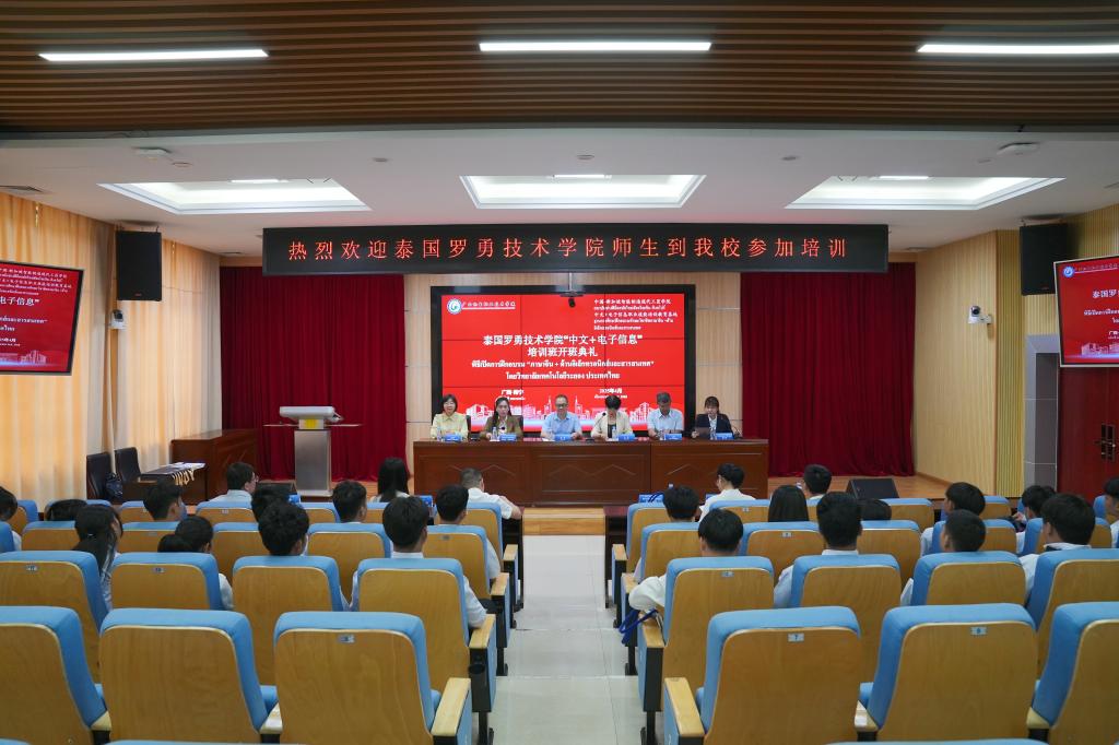 4月21日上午,万象城官网举行泰国罗勇技术学院“中文+电子信息”培训班开班典礼。副校长刘捷出席开班典礼,国际教育学院院长付瑶主持开班典礼。