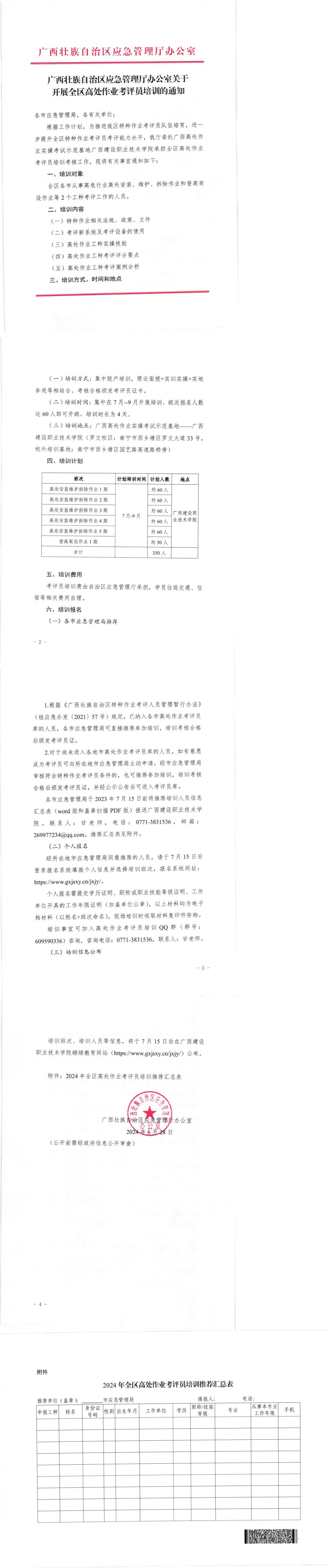 广西壮族自治区应急管理厅办公室关于开展全区高处作业考评员培训的通知