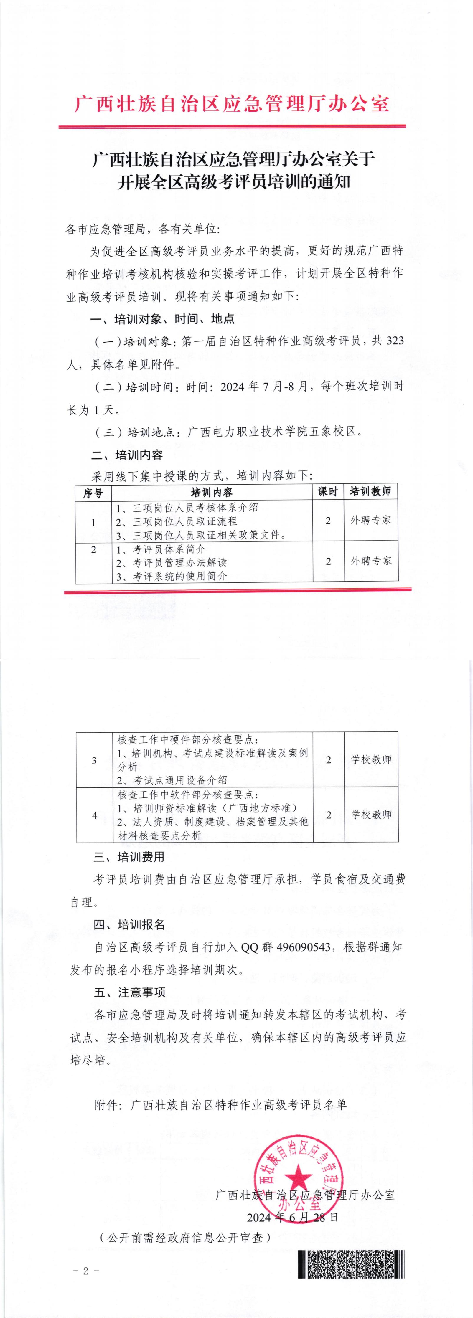 广西壮族自治区应急管理厅办公室关于开展全区高处作业考评员培训的通知