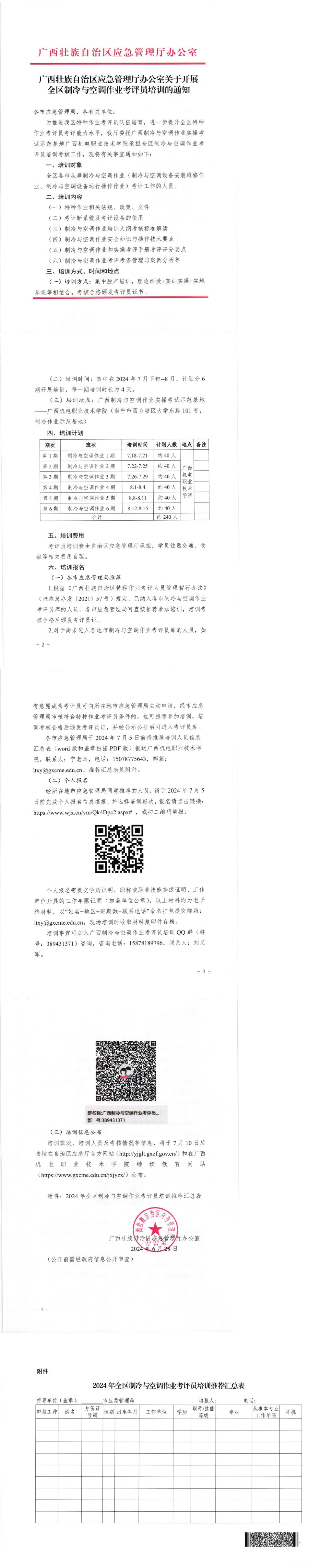 广西壮族自治区应急管理厅办公室关于开展全区制冷与空调作业考评员培训的通知