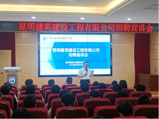 6月29日上午,昆明建英建筑工程有限公司到我院参加了2024年毕业生双选会,并在博远楼一号报告厅举办了2022级实习生专场招聘宣讲会。本次宣讲会由绿色建筑与低碳技术学院罗满书记主持,隋岩鹏、满高华、庞彩萍和黄继鲜老师陪同参会。