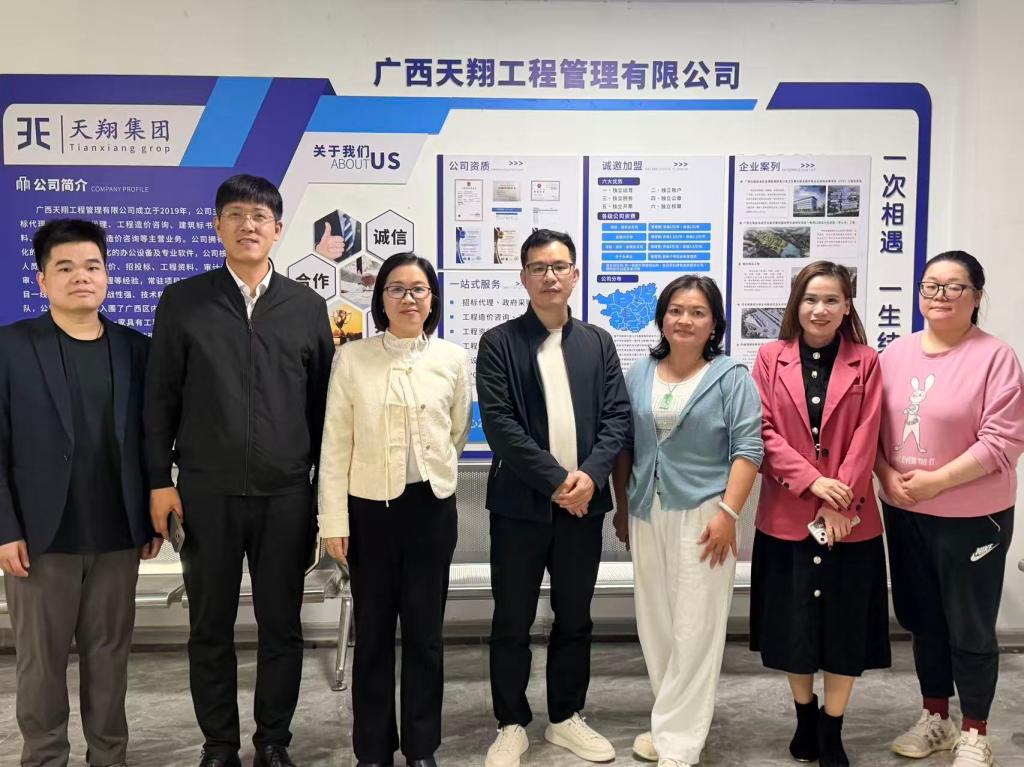 为精准对接工程造价行业人才需求,推动校企协同育人机制创新,2025年11月14日郭容宽副院长率工程造价教研室主任隋岩鹏、工程造价专业负责人黄大益赴南宁市青秀区广西天翔工程管理有限公司开展专项调研。广西天翔工程管理有限公司经理黄汉臣携主要部门负责人一起参与座谈。双方聚焦“校企合作提质增效”主题,就行业导师引进、学生实习就业、教师企业实践等议题展开深度交流,共谋产教融合新路径。