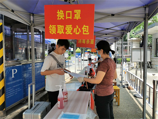 在入校通道口,我系2018、2019级的同学们在保卫处工作人员及系部老师的指引下,依次通过测量体温、行李消毒、手部消毒、更换新口罩等严格程序,平安有序进入校园。在核验身份办理点,辅导员们热情的欢迎同学们返校并叮嘱大家一定要科学做好个人防护,自觉严格遵守校园防疫工作的要求,把防疫安全放在首位,积极以良好的心态投身到返校后的各项学习和生活当中。
