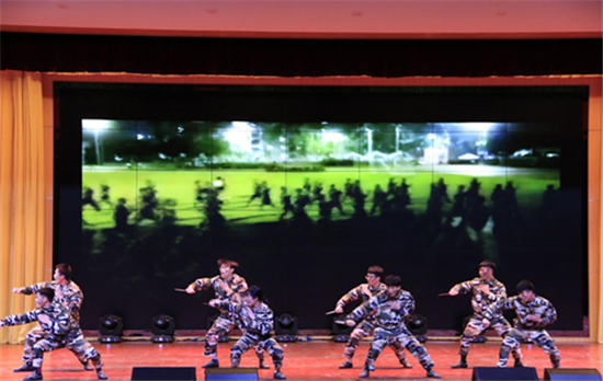 在晚会第二篇章,物业1801班带来的舞蹈《青春热舞》,极富青春活力和朝气,让现场气氛再次沸腾,掌声欢呼声不断。水电1701刘剑东带来的歌曲《追梦赤子心》,紧紧拨动内心的心弦,让人内心深受触动,产生强烈的情感共鸣。建工1902班带来的军拳展示《热血军魂》,闪亮的匕首,整齐划一的军拳,释放了青春的热血和豪情。系学生会的同学们带来的歌舞串烧《青春修炼手册》,精彩诠释了我系学生干部群体的朝气蓬勃、团结向上和亲和力。