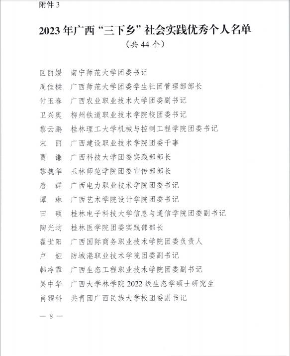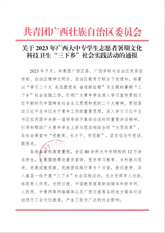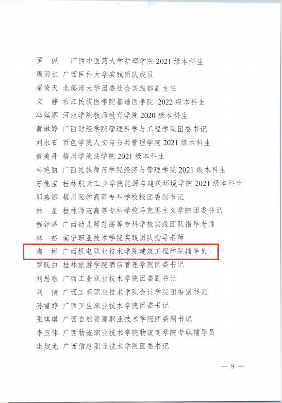 12月18日,团区委通报表彰了2023年自治区大中专学生志愿者暑期 “三下乡”社会实践活动先进集体和个人。建筑工程学院辅导员陶彬获评自治区“三下乡”社会实践“优秀个人”荣誉称号。