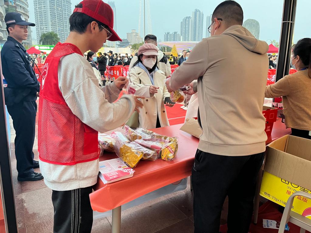 市民风雨无阻,大家手持身份证,一刷拿一盒,在青年志愿者紧张有序的引导下,3000盒蔓越莓就这样送往各处,市民纷纷欢呼,感谢东北老铁送的蔓越莓!在西乡塘区的发放现场,除了蔓越莓,还有来自西乡塘区的满满诚意和爱意——1个砂糖橘、2小包坚果和1罐青岛啤酒。