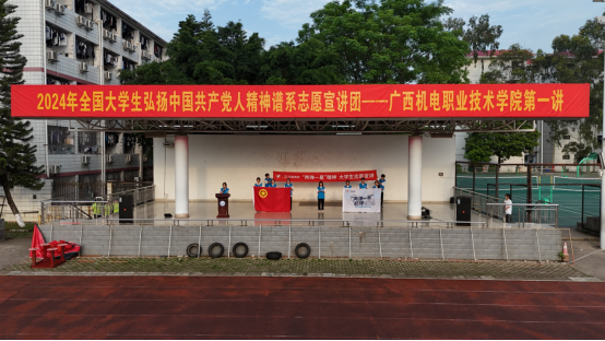 为深入学习宣传贯彻习近平新时代中国特色社会主义思想和党的二十大精神,落实“强国复兴有我”群众性主题宣传教育活动相关要求,引导动员青年学生大力弘扬中国共产党人精神谱系,5月13日,我院“两弹一星”精神志愿宣讲团通过升旗仪式面向学校在校生进行第一次宣讲,标志着万象城官网2024年全国大学生弘扬中国共产党人精神谱系志愿宣讲团宣讲活动正式全面启动。