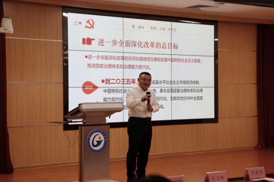 为深入学习贯彻党的二十届三中全会精神以及全国教育大会精神,认真贯彻落实习近平总书记关于青年工作的重要思想,12月24日,学院党委书记罗满在博远楼1号报告厅进行题为“高举改革开放旗帜,推进强国复兴伟业”的第六期“青年马克思主义者培养工程”陶冶班第一讲,全体第六期“青年马克思主义者培养工程”陶冶班同学参加。