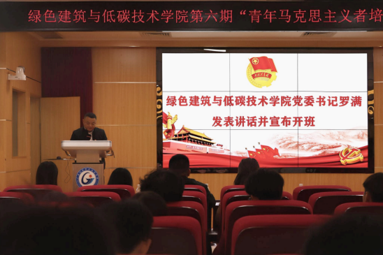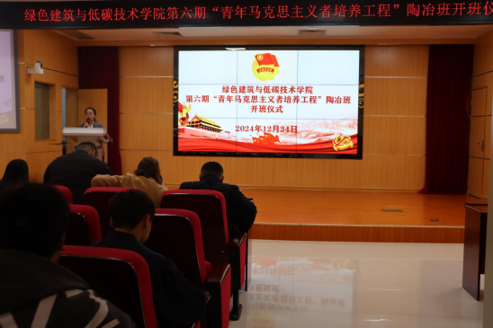为深入学习贯彻党的二十大和二十届三中全会精神,认真贯彻落实习近平总书记关于青年工作的重要思想,为党培养和输送一批政治坚定、能力突出、素质优良、作风过硬的青年骨干,2024年12月25日,我院在博远楼一号报告厅举办绿色建筑与低碳技术学院第六期“青年马克思主义者培养工程”陶冶班开班仪式。学院党委书记罗满,学院党委副书记卜庭梅,学院党委委员梁桥欣,学院学生第一党支部委员陶彬、陈荣梅、庞彩萍,学院学生第二党支部委员班燕华、许文坤、吴婷婷等出席开班仪式,2023级、2024级各班班团干及团学易代表共238人参加,由学院团委书记彭莉主持本次开班仪式。