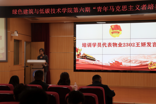 物业2302班王妍作为培训学员代表发言并承诺,要争做优秀的青年马克思主义者,争做走在时代前列的奋进者、开拓者、奉献者,在中国式现代化建设中勇当先锋队、突击队,在理论学习和实践中锻炼自我,让青春脉搏与时代同频共振。