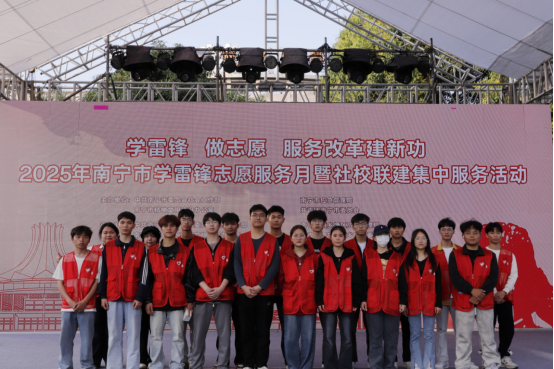 awc77万象城官网绿色建筑与低碳技术学院团委、学生第一党支部、学生第二党支部、“红砖筑梦”辅导员工作室组织20余位大学生志愿者参与南宁市2025年学雷锋志愿服务月暨社校联建集中服务活动。