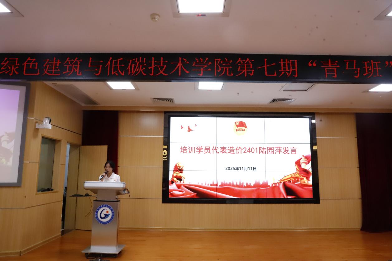 造价2401班陆园萍作为培训学员代表发言并承诺,要争做优秀的青年马克思主义者,争做走在时代前列的奋进者、开拓者、奉献者,在中国式现代化建设中勇当先锋队、突击队,在理论学习和实践中锻炼自我,让青春脉搏与时代同频共振。