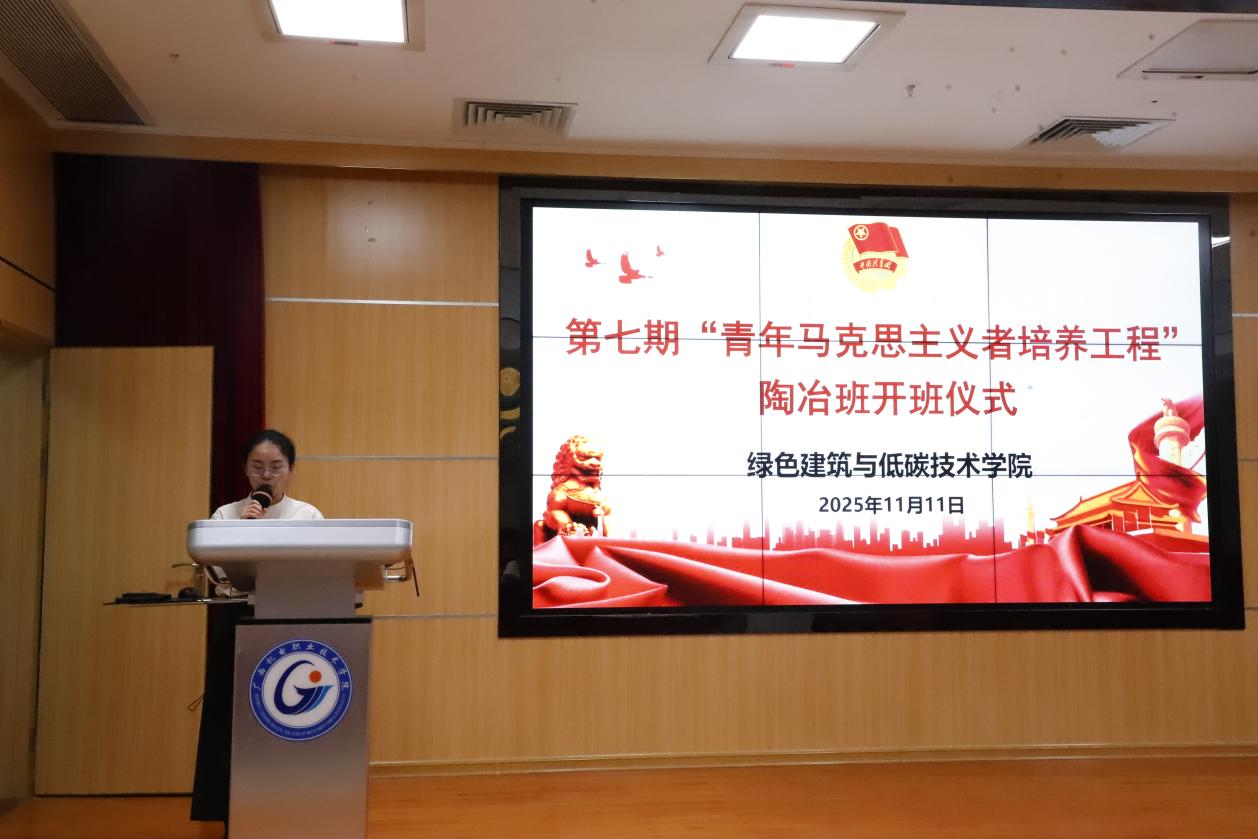 为深入学习贯彻党的二十大和二十届四中全会精神,认真贯彻落实习近平总书记关于青年工作的重要思想,进一步加强对我院学生的理论武装和实践锻炼,11月11日,我院在博远楼一号报告厅举办绿色建筑与低碳技术学院第七期“青年马克思主义者培训工程”陶冶班开班仪式。学院党委书记罗满,学院党委副书记卜庭梅,学院党委委员梁桥欣,学院学生第一党支部委员陶彬、陈荣梅、庞彩萍,学院学生第二党支部委员覃蓝天、许文坤、吴婷婷等出席开班仪式,2024级、2025级各班班团干及团学易代表约200人参加,由学院团委书记彭莉主持本次开班仪式。
