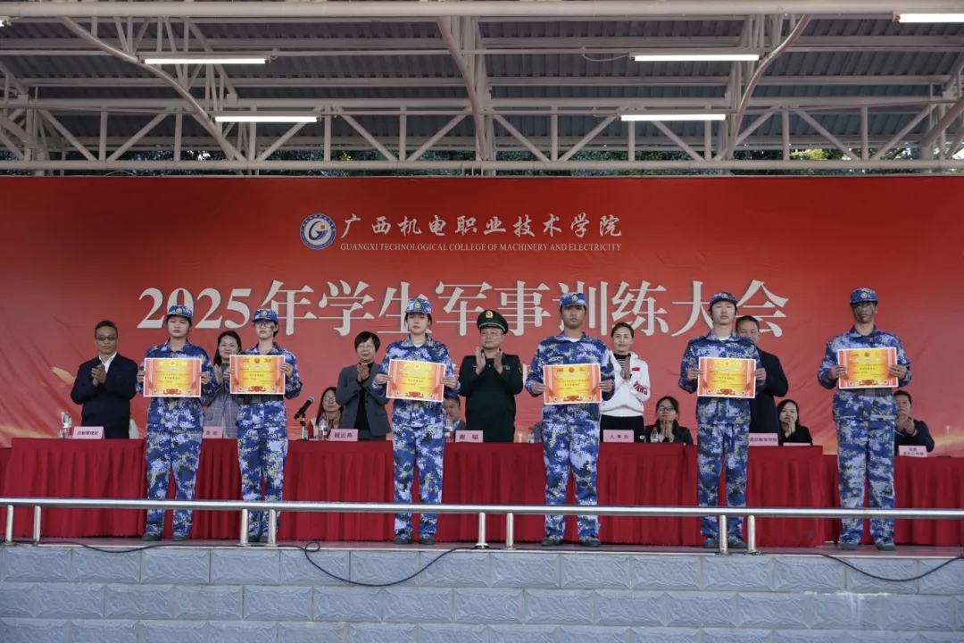 军事训练成果展示结束后,学校领导宣读2025年学生军训表彰决定,并为在军训中表现优异的班级、教官、学生颁发奖状。