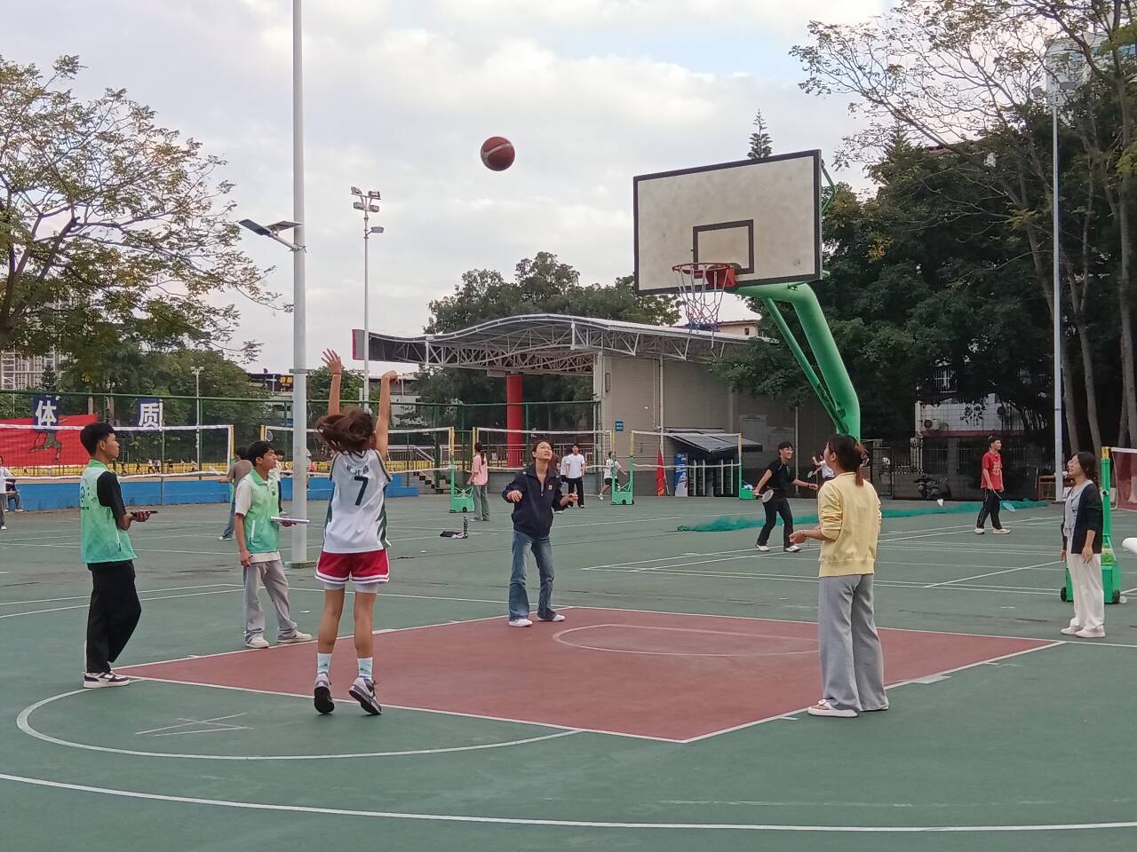 本次活动依托学校“一站式”学生社区平台,将体育赛事与社区文化建设深度融合。赛前,通过线上报名精准对接学生需求,从赛制设计到器材准备均体现“学生主导、社区赋能”的特色。比赛以宿舍为单位为小队,采用轮换制进行每人10球的定点投篮挑战,比赛过程中既有紧张激烈的比拼,也充满了欢声笑语。各宿舍成员分工协作、相互鼓劲,充分展现了团队合作精神与集体荣誉感。赛事不仅提升了学生的身体素质,更增强了宿舍内部及宿舍之间的交流与凝聚力,实现了体育育人与社区融合的双重目标。