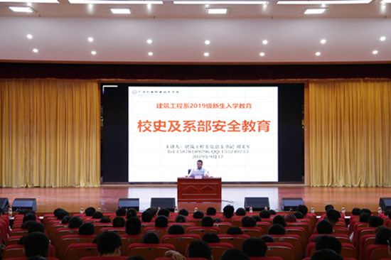 10月14日晚,我系在博远楼6楼小礼堂举行2019级新生安全教育大会。系主任周运金教授、系党总支书记刘义军副教授、办公室主任黄坚及各专业负责人、学生秘书、教学秘书、辅导员、2019级新生等参加了会议,会议由系团委书记覃媛主持。