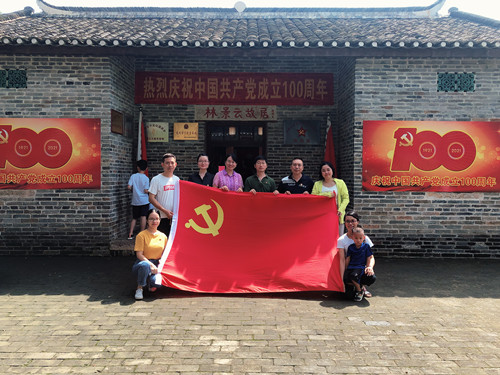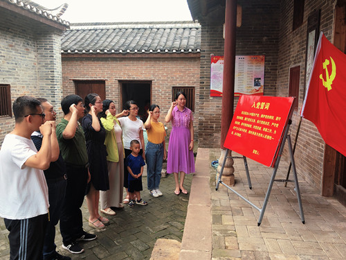 参观故居时,在鲜艳的党旗下,党支部吴彬宇书记带领大家重温入党誓词,在庄严的宣誓中,全体党员紧握右拳,铿锵有力地说出誓词中的每一个字词,铮铮誓言,让为中国人民谋幸福,为中华民族谋复兴的初心和使命篆刻在每一位党员的心里。
