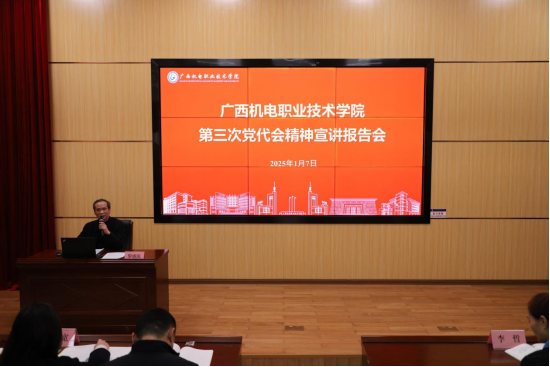 会议指出,学校第三次党代会是在全国上下深入贯彻落实党的二十届三中全会精神,全区上下全面贯彻落实习近平总书记对广西工作论述的重要要求,全校上下全面贯彻落实全国教育大会精神和自治区第十二次党代会及历次全会精神,以及全区教育大会精神之际,在以进一步全面深化改革奋力谱写中国式现代化广西篇章的重要时期,全力推动学校事业高质量发展迈上“建双高升职本”新起点的关键时刻召开的一次十分重要的会议,事关学校未来五年的改革发展,意义重大、影响深远。全体干部师生要深刻领会,准确把握学校“11159”发展战略,踔厉奋发、勇毅前行,在“建设广西领先、国内一流、国际知名高水平智能制造特色校”的新征途中彰显担当、铸就新绩。