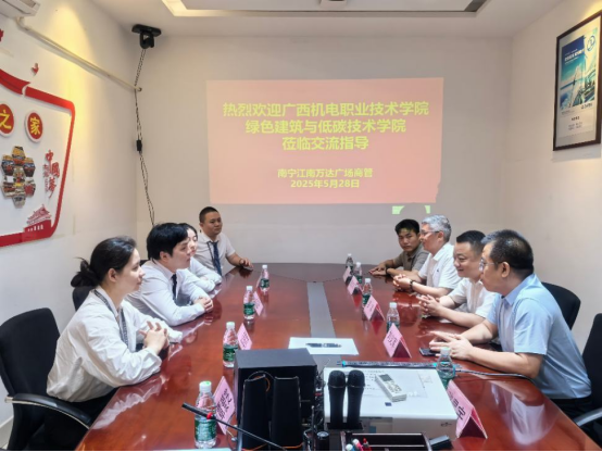 5月28日上午,党支部与广西南宁西城万达商业管理有限公司开展联建活动,组织党员教师实地调研企业节能降耗技术需求。针对商业综合体暖通系统能效提升问题,双方共同组建 “党员科研攻关小组”,对接企业节能改造项目。同时,校企达成共建 “万达广场就业驿站” 协议,为学生开辟就业直通车,并规划建设大型商业综合体节能运维岗位实习基地,探索“人才培养—实习就业—技术服务”一体化合作模式。