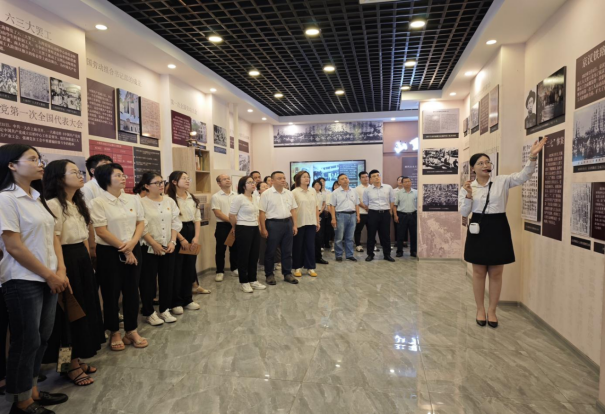 在讲解员的带领下,党员们首先参观了红色工运史陈列展馆。此展陈区分为“伟大开端”“山重水复”“抗日烽火”和“天翻地覆”四个篇章,以时间为轴串联起1919年至1949年间中国共产党领导工人运动的重要历史节点,通过大量珍贵的历史照片及视频影像等多种媒介,生动展现了中国共产党带领工人阶级开展反帝反封建斗争、争取民族独立的壮丽史诗。让同志们深刻认识到工人阶级在党的领导下所展现出的坚定信念与使命担当,进一步筑牢“听党话、跟党走”的思想根基,凝聚起传承红色基因、践行初心使命的强大精神动力。