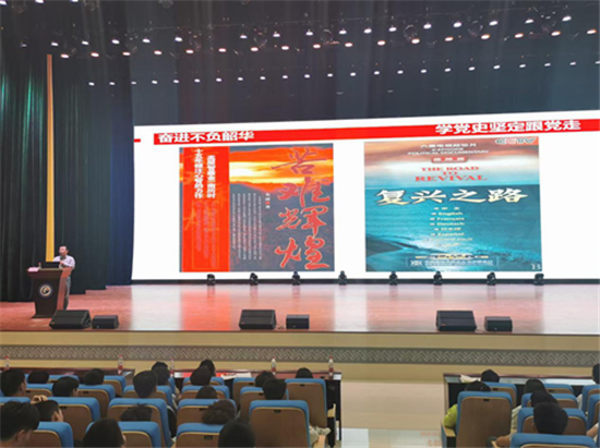 刘书记从国庆70周年阅兵谈起带领同学们 感受伟大的时代,引导同学们树立民族的自信心和自豪感;从中国共产党诞生、新中国成立建设新中国、改革开放、中国特色社会主义新时代等重大历史节点与事件带领同学们认知伟大的党;鼓励同学们奋进不负韶华,通过读《苦难辉煌》、《复兴之路》等经典著作,通过看《建党伟业》、《建国大业》、《血战湘江》、《外交风云》史诗影视剧,创新学习方式主动学党史、学中国革命史,坚定跟党走,做新时代的奋斗者,在新时代的伟大征程上实现个人自我价值,为实现中华民族伟大复兴的中国梦不懈奋斗。刘书记的精彩的党课,赢得了同学们的阵阵掌声。