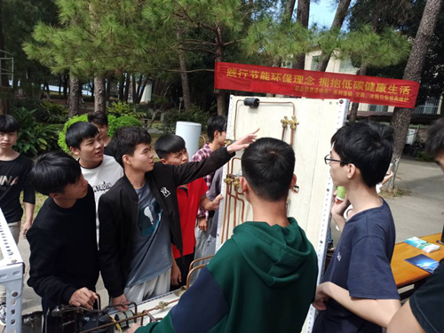 在展示过程中,空调专业的同学们还就社区居民关心的空调、冰箱品牌优势、特点及日常生活中遇到的各种问题和困惑做了现场详细热情解答。这次还特地展示了近年来同学们在专业老师指导下创新实践制作的“便携太阳能烧烤炉”、“半导体制冷微型冰箱”等节能产品,活动取得圆满成功,得到了路过行人和同学们的积极关注和认可。