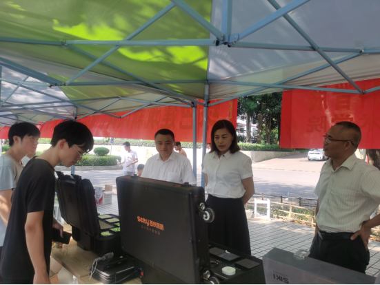 在活动现场,学院党委书记罗满,院长李哲与学生热情交流,询问绿色低碳新技术、新工艺、新设备的专业知识以及行业发展的最新动态,对参加活动学生志愿者的专业知识和技能水平给予肯定,并鼓励师生结合专业优势,加强理论与实践的结合,发挥聪明才智,开拓创新,践行“绿色低碳”,助力发展新质生产力,更好地服务社会,助推学校高质量发展。