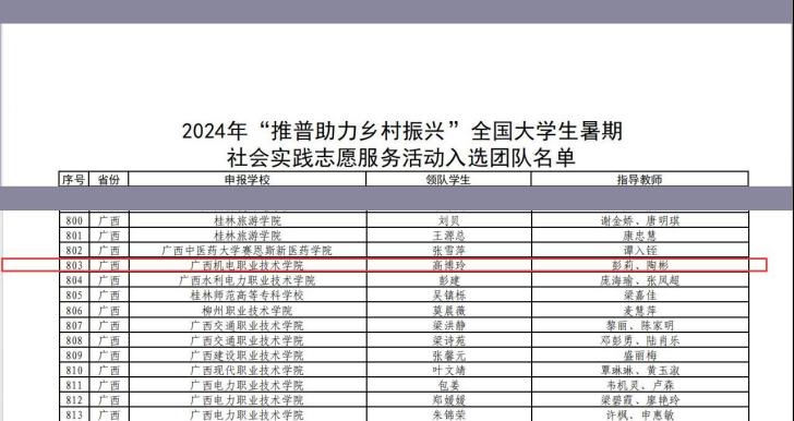7月2日,教育部公布《2024年“推普助力乡村振兴”全国大学生暑期社会实践志愿服务活动入选团队名单》,万象城官网绿色建筑与低碳技术学院静思湖青年赴博白县推普助力乡村振兴实践团成功入选,实践团队由彭莉、陶彬两位老师指导。