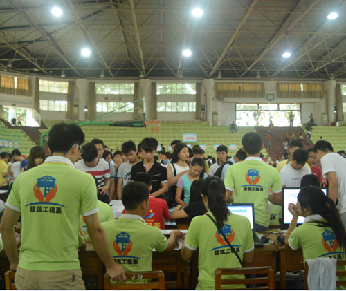 为提高新生接待工作的效率,结合系部工作的具体要求,我系本次新生接待工作共设立了新生引导服务区、新生专业报到注册区、绿色通道咨询区、专业咨询区、家长休息等候区、新生宿舍安排区等六大功能区域,每个区域都安排专门的工作人员及2名老师进行现场指挥协调。在校园的每个角落,都可以看到我系迎新工作小组的同学们不停忙碌的身影,他们周到热情的服务,不仅让2015级的新同学们充分感受到了来自学院及系部的关怀,也充分感受到了大学校园的朝气与活力。