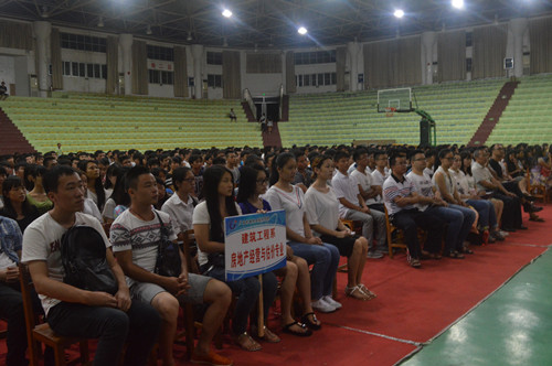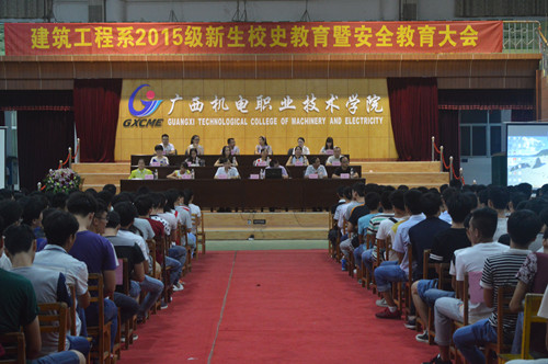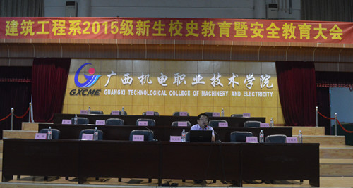 9月9日晚19:30分,我系在学院体育馆隆重举行建筑工程系2015级新生校史教育暨新生安全教育大会。系主任周运金教授、系党总支书记刘义军副教授等主要领导及各专业负责人、办公室秘书、辅导员等共同出席了本次会议,会议由系团总支书记覃媛主持。