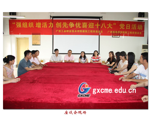2012年6月15日下午,建筑工程系党总支教师党员到广西工业职业技术学院,与该院建筑工程系开展了“强组织·增活力·创先争优迎十八大”为主题的结对共建党日活动。