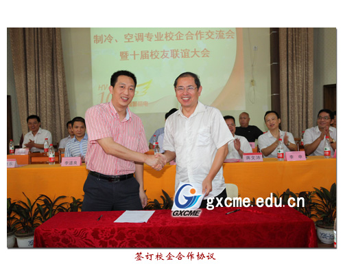 本次大会的主题是“感恩、联谊、合作、发展”。会上,学院副院长蒋文沛致辞,代表学院热烈欢迎行业企业领导、嘉宾及校友代表的到来,感谢行业、企业、校友及各届朋友一直以来对学院的支持。接着,广西制冷学会会长李申代表行业学会致辞,表示学会将发挥好桥梁纽带作用,促进行业内企业、学校、科研机构多方面的合作交流,形成紧密的工作关系和互动机制,希望校企合作结出更多丰硕成果。随后,广西美的暖通设备销售有限公司经理李道良、2000级校友佛山市四为电器有限公司副总经理黄诚、在校生廖宜龙分别代表企业、毕业生、在校生做了发言。建筑工程系党总支书记蓝兴洲分别与南京天加空调设备有限公司南宁分公司总经理赖家馨、广西南宁良凯制冷设备工程有限公司总经理韦伟祥签订了校企合作协议。