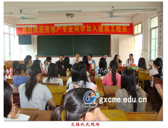 2011年9月23日下午16:50,工商管理系与建筑工程系在2504教室举行了商务经纪与代理专业(房地产经纪方向)交接仪式。学院教务科研处副处长黎盛寓、工商管理系主任严金才、建筑工程系主任李晓东、建筑工程系党总支书记蓝兴洲、建筑工程系副主任周玲等出席了交接仪式。