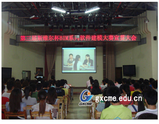 2011年10月12日晚,建筑工程系在图书馆多功能厅举办了“全国第三届斯维尔BIM系列软件建模大赛宣贯大会”。系主任李晓东、系党总支书记蓝兴洲、斯维尔培训中心副总杜永明先生、相关教师和工程造价专业2010级全体学生参加了这次大会。
