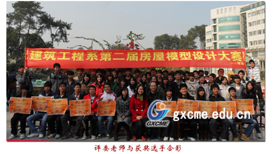2011年12月25日9时,建筑工程系第二届房屋模型设计大赛在学院滨水广场举行。大赛由建筑工程系学生会和建筑工程协会共同举办,建筑系副主任周玲、团总支书记吴彬宇、建工和造价专业老师饶晓文、甘海龙等老师担任本次大赛的评委。