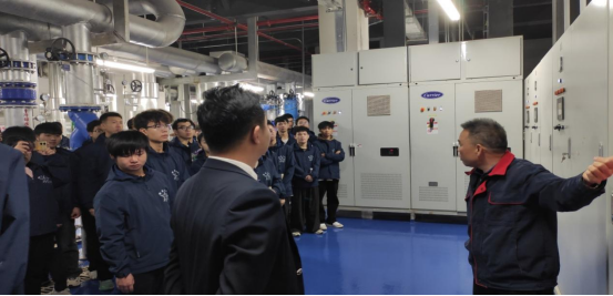 同学们近距离了解了中央空调、高低压变电柜等配套设备设施。