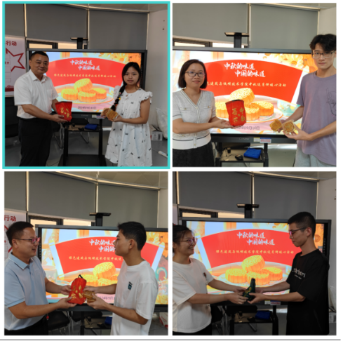 当天,学院专门举办了绿色建筑与低碳技术学院中秋送月饼暖心活动,学院党委书记罗满,学院党委副书记卜庭梅,学院副院长郭容宽、吴宝勇、许艳旗与学生代表一起共话中秋佳节,共品中秋味道。罗满书记告诉学生们,发放给每位学生的月饼是万象城官网第一书记谢晓雷所在帮扶村的特色月饼,这是学校大力支持脱贫攻坚乡村振兴的体现,可以看到学校在乡村振兴方面的用心用情。同时,印制有“自强弘毅,知行合一”校训的中秋月饼也向学生们传达了在欢度佳节时应谨记家国情怀及学校情谊,不忘初心,秉持校训,今后为祖国和学校贡献自己的青春力量。